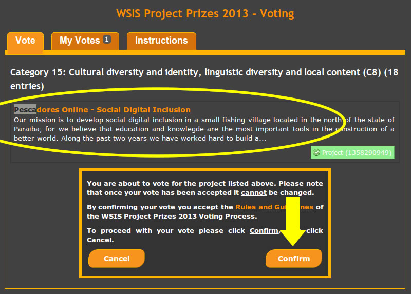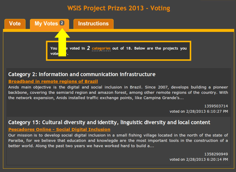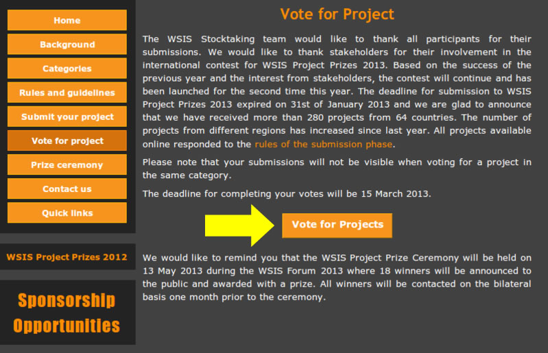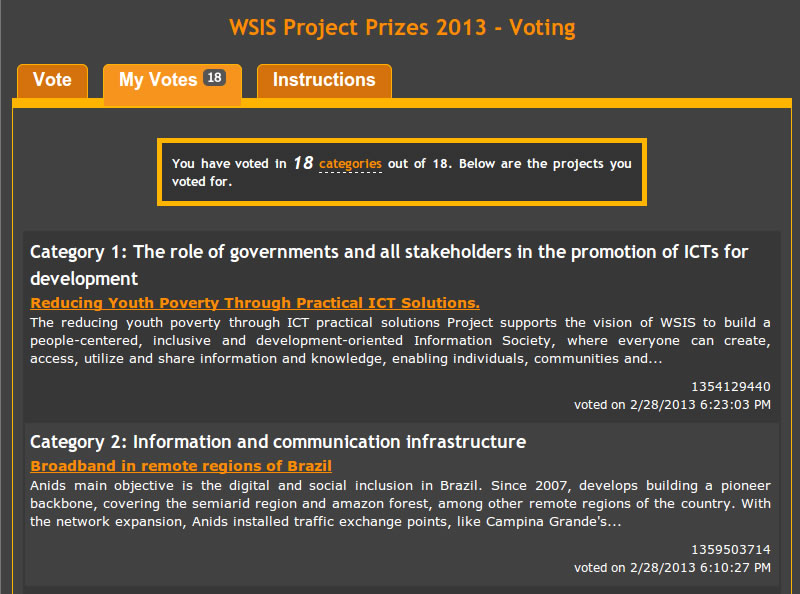 A ANID está participando do WSIS Project Prizes 2013, premiação internacional a ser realizada no Fórum da Cúpula Mundial da Sociedade da Informação (WSIS Forum 2013). A cerimônia acontece em maio deste ano, em Genebra, na Suíça. A Anid inscreveu dois Projetos “Banda larga em regiões remotas do Brasil” e “Pescadores Online”, concorrendo assim em duas categorias: “Information and communication infrastructure” e “Cultural diversity and identity, linguistic diversity and local content”.